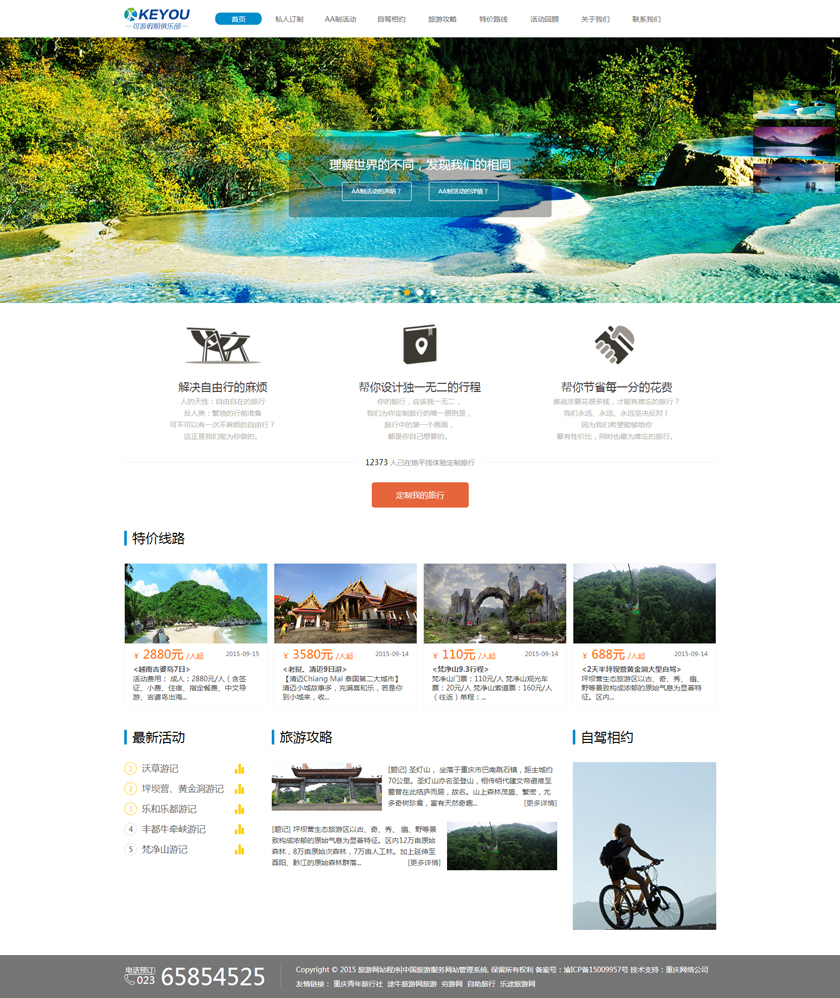 Project Description 6人游旅行网隶属于北京六人游国际旅行社有限公司。打造“为爱出行”:专为家庭,朋友,情侣间的旅行,提供私家小团精品游。打造高品质的旅行产品,解决传统跟团游和自由行存在的问题,将旅行服务做到臻善臻美。 Official website address 内江http://www.keyoujq.com I want to share